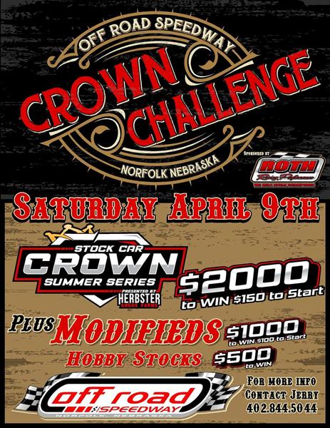 April 9th, the OffRoad Speedway will host the Stock Car Crown summer series, presented by Herbster Angus Farms. Stock Cars will be racing for the top prize of $2000 and $150 to start, plus competing for a share of a $15,000 points fund in the season long series scheduled to run at 9 different tracks in Nebraska.